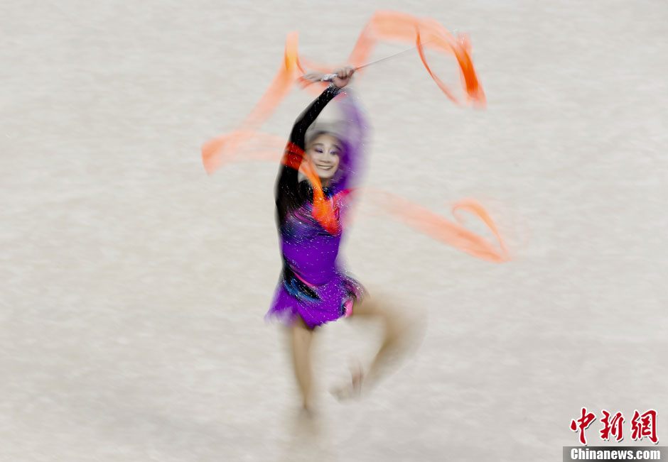 9月8日,第十二届全运会艺术体操比赛在沈阳举行。广东选手王曼亲在比赛中。中新社发 刘关关 摄