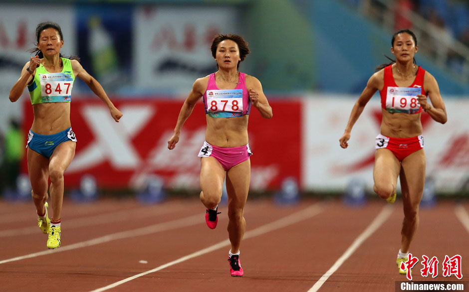 9月8日,在沈阳举行的全运会女子100米决赛中,来自江西的选手陶宇佳夺得冠军。中新社发 张家瑞 摄