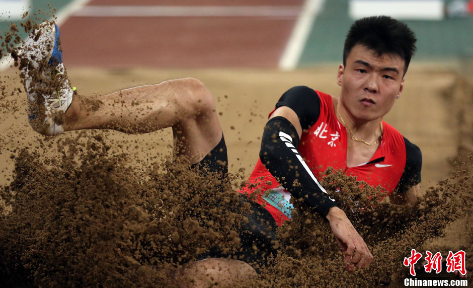 9月8日,在沈阳举行的第十二届全运会男子跳远决赛中,李金哲夺得冠军。中新社发 张家瑞 摄
