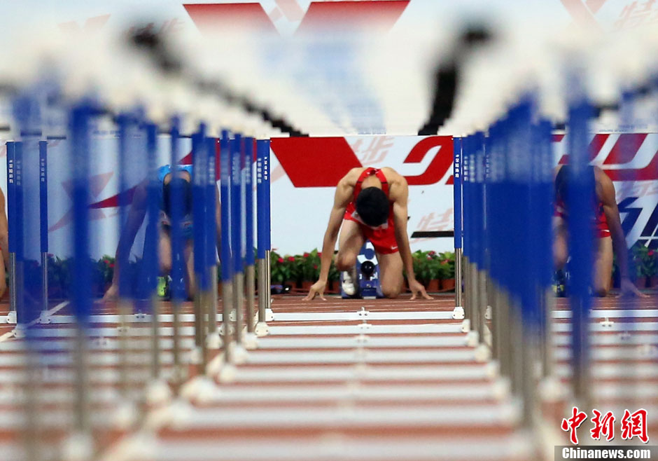 全运会男子110米栏预赛 选手全力以赴