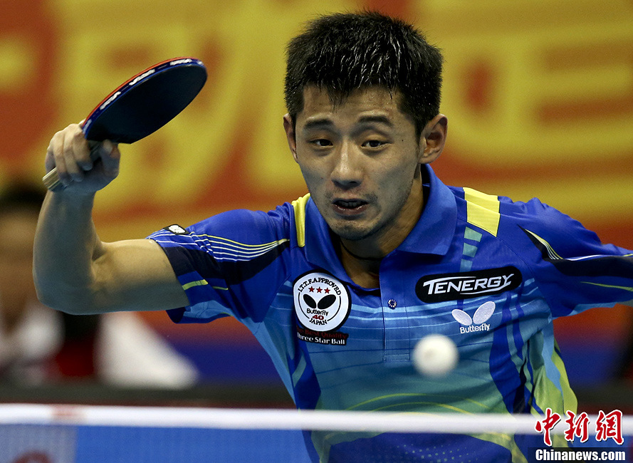9月9日,第十二届全运会乒乓球比赛男单1/4决赛在鞍山举行,山东选手张继科2-4不敌解放军小将樊振东,无缘男单4强。中新社发 刘关关 摄