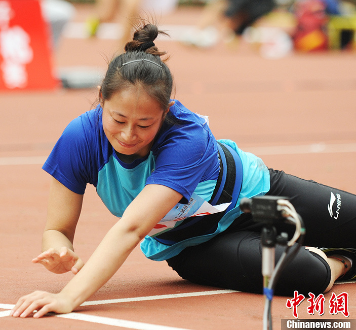 9月9日,第十二届全运会女子标枪决赛在沈阳市奥体中心体育场举行。山东选手李玲蔚在比赛中跌倒,最终她凭借最后一掷的63米06获得冠军。中新网记者 李美多 摄