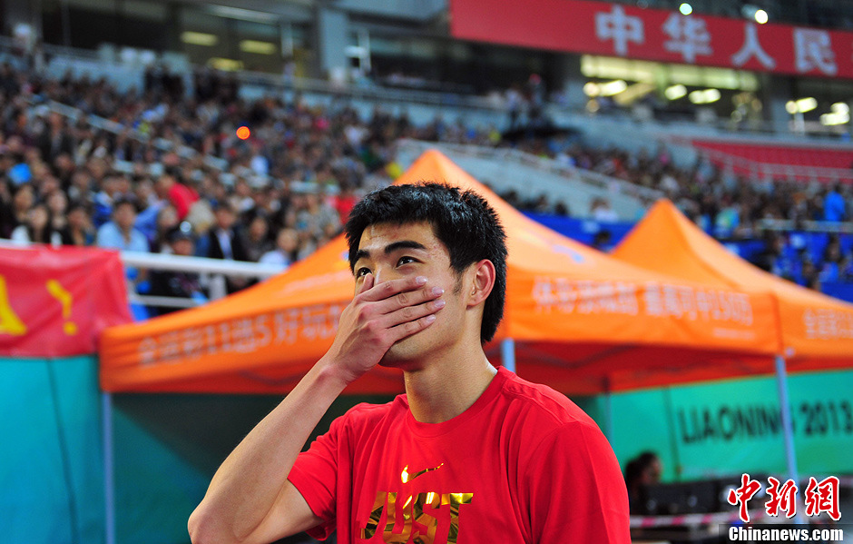 9月9日,第十二届全运会田径男子110米栏决赛在沈阳奥体中心体育场举行。上海队选手谢文骏13秒36获得冠军。中新社发 于海洋 摄