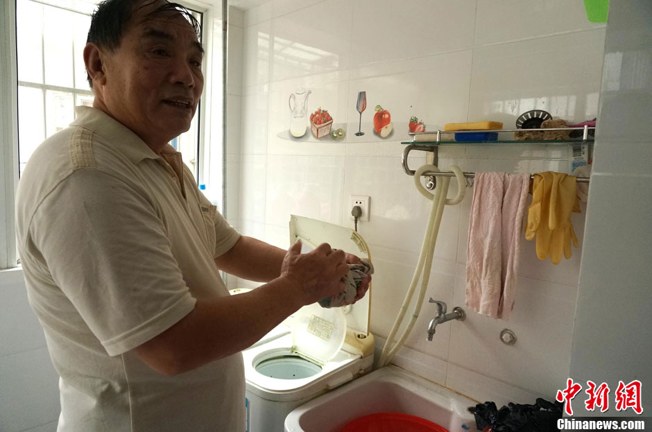 老伴身体不好,焦重欣便全揽了给儿子洗衣、洗尿布的活。他说,以前老两口过得省,天天洗尿布双手手腕时常疼痛,直至两年前两人才舍得花钱买了台洗衣机。周小云 摄