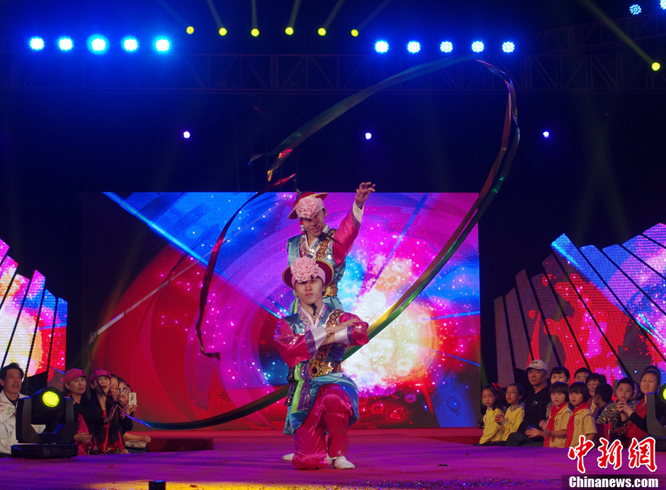 10月3日晚,以“相亲相爱. 十全十美”为主题的第十届北京双胞胎文化节在红领巾公园正式闭幕。在颁奖晚会上,来自中国各地的参赛选手们各施绝技,为观众们展示了双胞胎们的别样才华。中新社发 贾天勇 摄