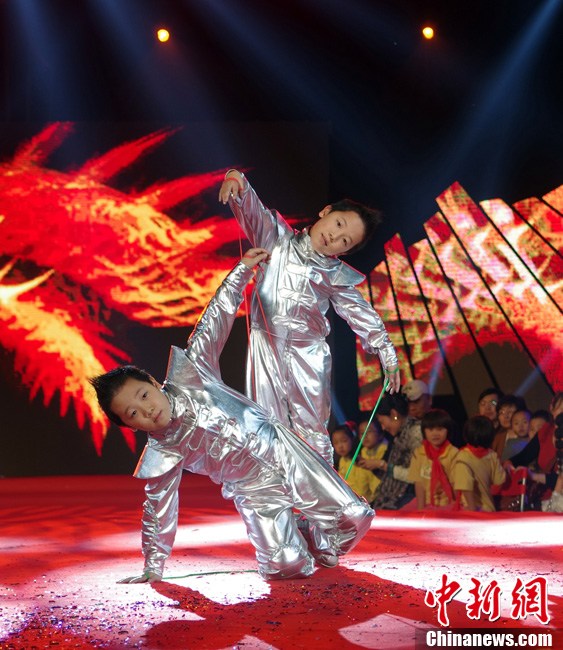 10月3日晚,以“相亲相爱. 十全十美”为主题的第十届北京双胞胎文化节在红领巾公园正式闭幕。在颁奖晚会上,来自中国各地的参赛选手们各施绝技,为观众们展示了双胞胎们的别样才华。中新社发 贾天勇 摄