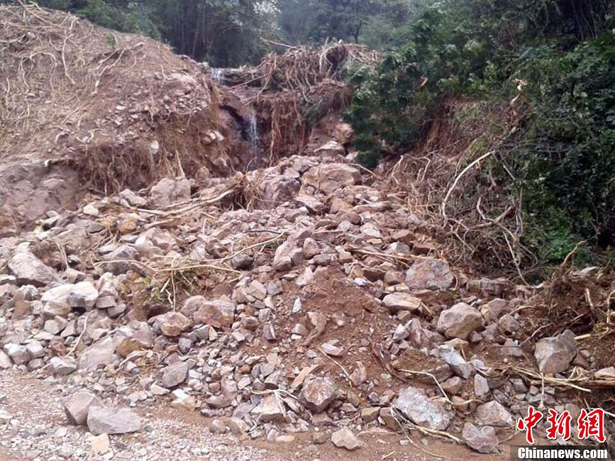 尽管今年第23号强台风“菲特”未在浙江省登陆,但其“威力”甚强,几乎席卷浙江余姚市。这座有着悠久历史的城市遭受了百年一遇的洪涝灾害,交通瘫痪、断水断电,整个城市变成“孤岛”,伤痕累累。图为余姚道路边出现滑坡。徐小勇 摄