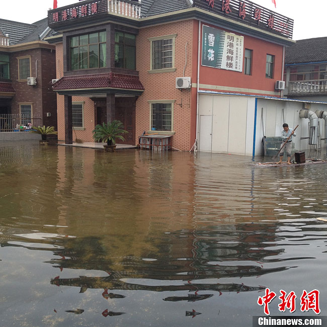 10月9日上午10时,浙江宁波余姚市过程雨量499.9毫米,全市79个监测点中有42个超过500毫米,其中最大张公岭站819毫米,降雨量可能达百年一遇,强降雨令余姚积水严重。9日下午,随着降雨的停止,积水开始退去,但速度缓慢,部分地段成“沼国”。中新社发 徐小勇 摄