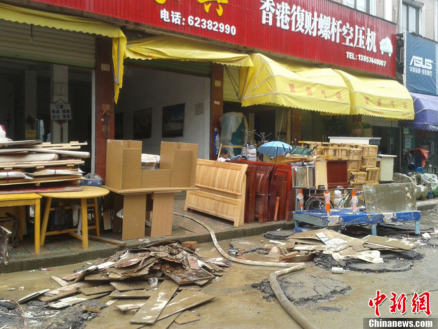 “菲特”离去 退水后的浙江余姚很“受伤”