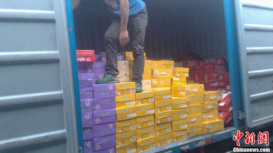 10月9日,宁波各县市地方政府与市民自发组织运输救灾物资。据了解,宁波市在获悉“菲特”台风来临的消息后,第一时间启动了应急预案,积极挖掘库存,储备了可供市民食用15天以上的物资,并且从周边县市调集了矿泉水、方便面、饼干、馒头等大量应急物资,物资可稳定充足供应。中新社发 何蒋勇 摄