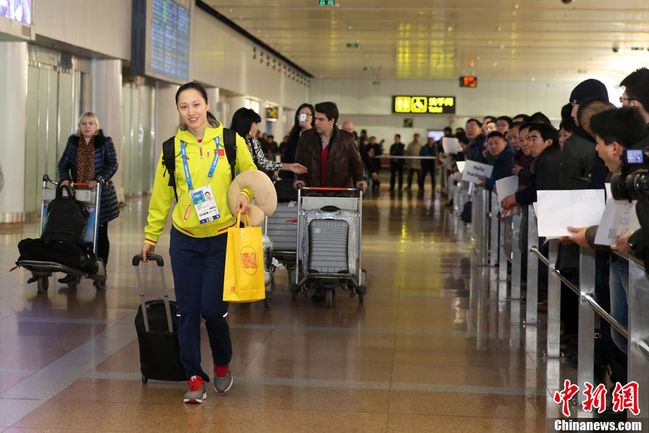 索契冬奥会速滑女子1000米冠军张虹凯旋归国 返回