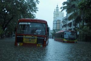 印度孟买街道变“河道”