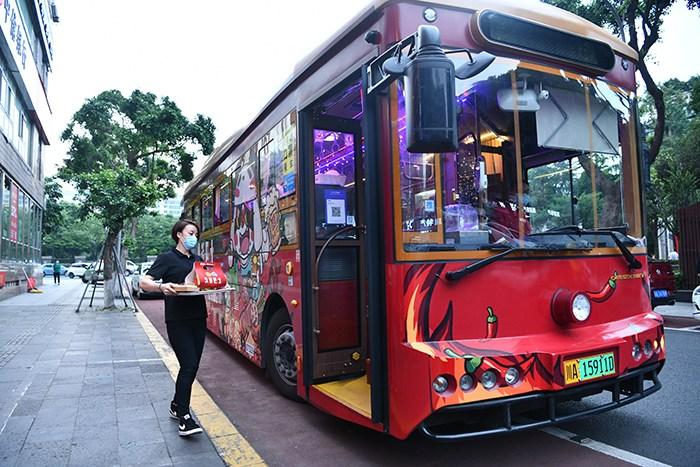 5月20日,广西南宁市五象新区举行“反诈集市”,反诈主题的口罩、奶茶和充电宝等物品引民众注目。这些产品由蟠龙派出所跟辖区内银行、酒店和商铺等组成的反诈联盟推出,把反诈知识融入年轻人的生活中。集市现场演出反诈主题说唱、情景剧和改编歌曲等,让更多市民了解电信网络诈骗的特点与危害。图为银行职工在集市上进行反诈宣传。 王以照 摄