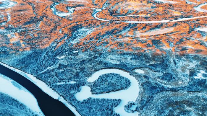 航拍额尔古纳湿地冬季风光