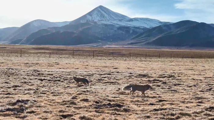 青海祁连:藏狐结伴觅食 “方脸”出镜又萌又凶