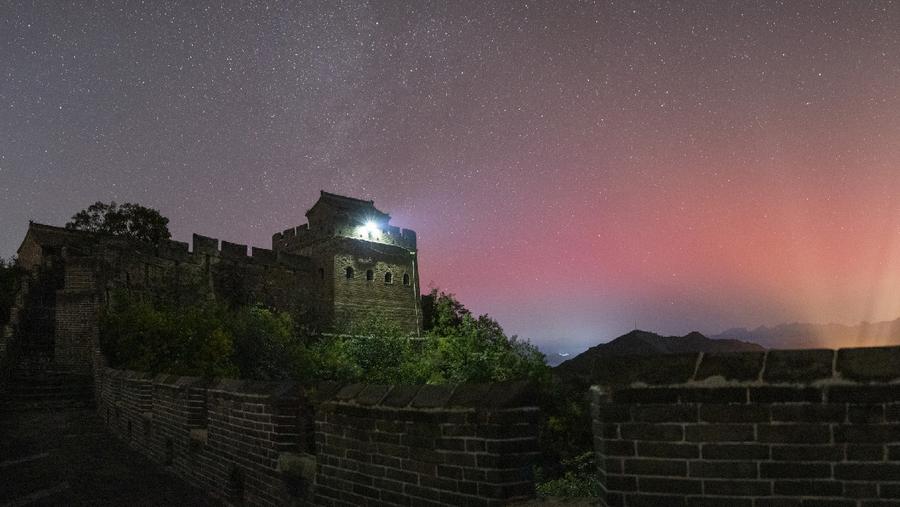 河北承德:金山岭长城现较明显极光