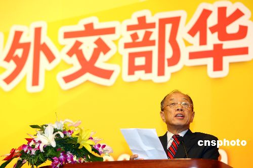 九月二十九日,二○○六年外交部华侨华人国庆联谊会在北京举行,中国外交部部长李肇星在联谊会上致词。中新社发 盛佳鹏 摄