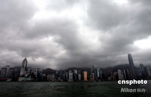 图:台风“鹦鹉”正面袭港维港乌云密布