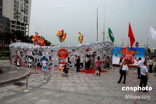 “为中国奥运健儿喝彩”嘉年华活动在澳门举行,澳门金莲花广场搭建的概念“鸟巢”吸引了众多市民和游客。中新社发 毕永光 摄