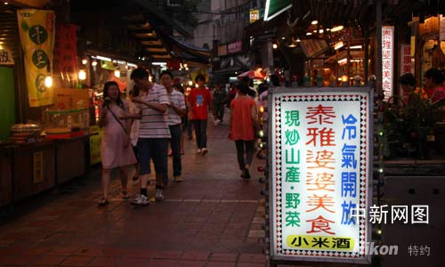 8月31日,台北县原住民族行政局、文化局邀请大陆在台驻点的媒体记者赴大台北地区唯一的原住民乡镇乌来采风,图为华灯初上的乌来老街一角。陈立宇 摄影