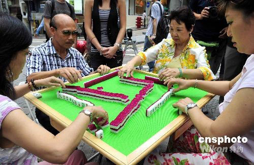 九月五日,首届“世界麻将大赛”冠军许宗澧在记者会上与其它选手比较高下。第二届“世界麻将大赛”将于九月十九日至二十一日在澳门举行,提供麻将竞赛有史以来的最高额奖金一百万美元。中新社发 谭达明 摄