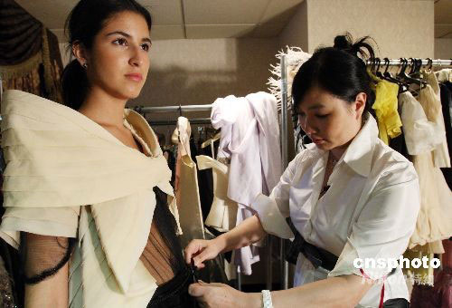 9月9日(当地时间),中国著名女装设计师罗峥,在美国纽约举行《中国时装与国际市场的发展》专题讲座吸引众多美国业内人士及华人前来参加交流。罗峥女装秀“人面桃花”于9月12日在纽约时装周展示,演绎欧柏兰奴女装东方新浪漫主义风格。中新社发 钱兴强 摄