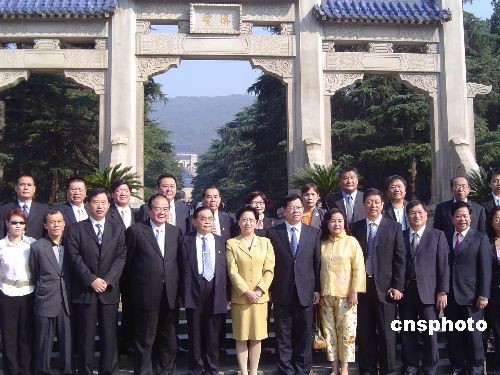 由主任委员蔡家福率领的中国国民党台北县委员会南京访问团一行,10月13日来到中山陵举行谒陵仪式。中新社发 王国安 摄