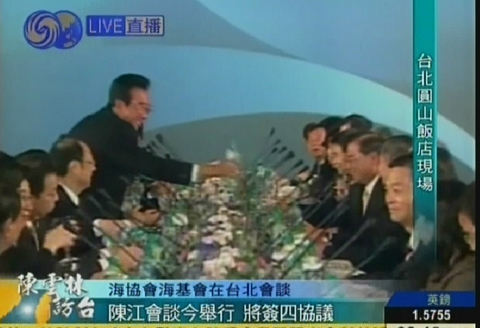 台北"陈江会"登场 陈云林为江丙坤倒水显温情时刻