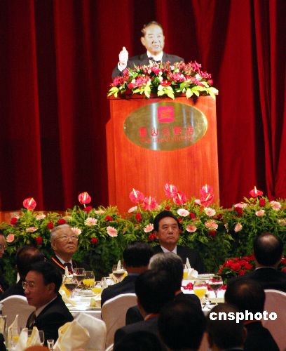 11月5日,亲民党主席宋楚瑜在台北圆山饭店设午宴欢迎海协会会长陈云林一行。中新社发 黄少华 摄