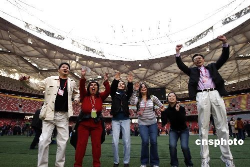 参加“2008年海外华裔青年杰出人士华夏行”活动的代表参观国家体育场“鸟巢”。