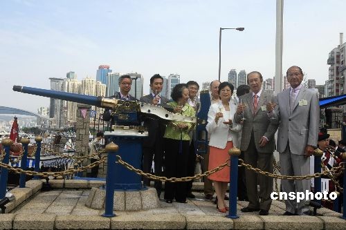 十一月八日,香港公益金在铜锣湾怡东酒店对开海旁举行四十周年午砲仪式以示庆祝。仪式由公益金会长曾鲍笑薇女士主礼,并由公益金执行委员会主席郑海泉,副主席莫伟龙及江焯开太平绅士,四十周年筹划委员会名誉顾问何鸿淼博士等陪同出席。中新社发 张勤 摄