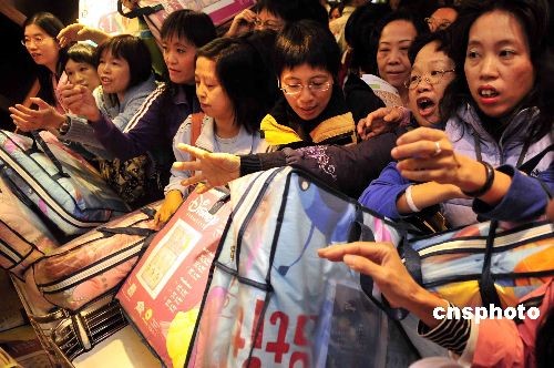 十一月二十日,香港沙田一间百货公司举行购物优惠日,推出五百多款货品,以原价二折发售,吸引大批市民前往购物。中新社发 谭达明 摄