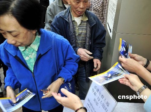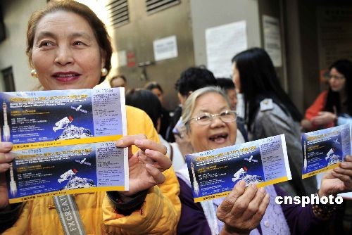 十二月二日早上九时,神舟七号航天代表团的大汇演门票在香港二十一个地点免费派发,每人限取两张。中新社发 谭达明 摄