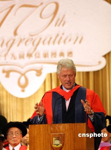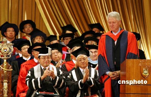 十二月四日,香港大学第一百七十九届名誉博士学位颁授典礼隆重举行,前美国总统克林顿获颁名誉法学博士学位。中新社发 武仲林 摄