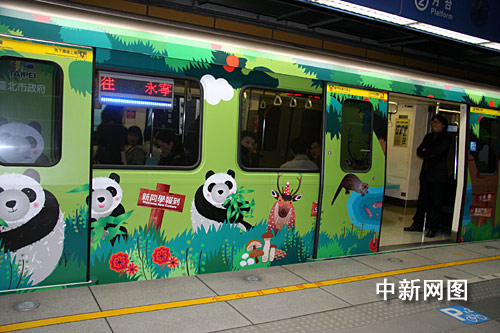 12月26日,台北市启动的大熊猫彩绘车在地铁中穿梭。 作者 陈立宇