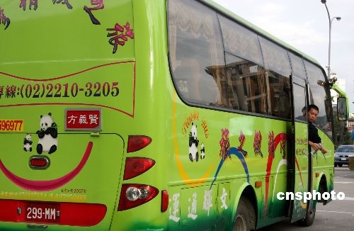 12月26日,一些印有大熊猫图案的旅游公司客车现身台北街头。中新社发 陈立宇 摄