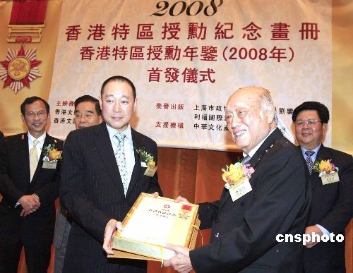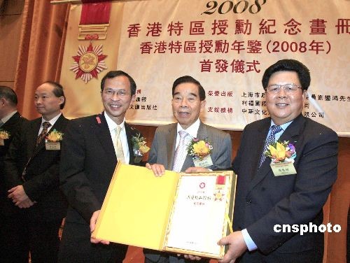 二月二十七日,记载颁授勋章历史场面的《2008年香港特区授勋纪念画册》首发仪式在香港中央图书馆举行。中新社发 张勤 摄