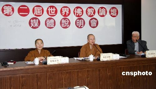 3月2日,台湾佛光山国际佛光会在台北举行媒体说明会,宣布第二届世界佛教论坛自3月30日开始从大陆移师台北,论坛的闭幕式将于4月1日在台北巨蛋体育馆举行。据悉,由中国佛教协会、台湾佛光山国际佛光会、香港佛教联合会和中华宗教文化交流协会共同主办的第二届世界佛教论坛将于3月28日在无锡市开幕,4月1日在台北闭幕。图为佛光山国际佛光会发言人、第二届世界佛教论坛台湾部分的发言人依空法师(中)在记者会上介绍论坛台湾部分筹备情况。中新社发 陈立宇 摄