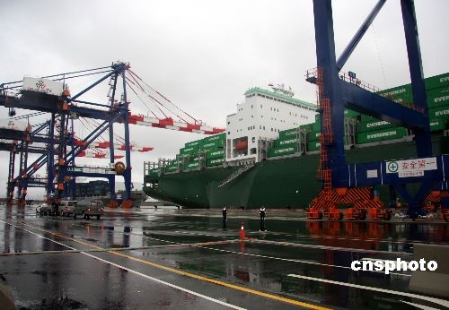 3月9日上午,位于台北县八里的台北港货柜储运中心正式启用营运。中新社发 陈立宇 摄