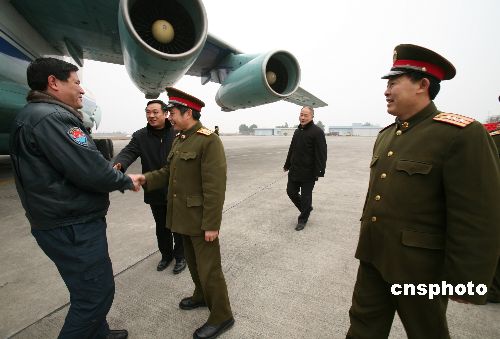 2月4日中午,驻湖北恩施土家族苗族自治州百余战士加紧从飞机上卸载救灾蜡烛。应商务部请求,解放军今天增派一架军机,为湖北恩施土家族苗族自治州运输50.4万根照明用蜡烛。因雪灾影响,湖北省恩施土家族苗族自治州电力中断,照明设备极缺,国家有关部门从大连调集了50.4万根蜡烛,并向军队提出了支援请求。据军队处置突发事件领导小组办公室陈哲明中校介绍,这批蜡烛总重量为28.66吨。当地政府有关负责人表示:这批蜡烛最迟会在明天全部发放到灾民手中。中新社发 田代明 摄