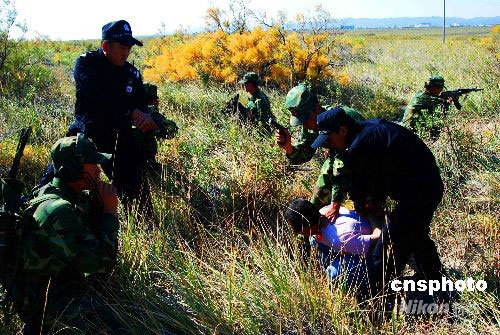 图:新疆解放军和公安联合打击边境罪犯