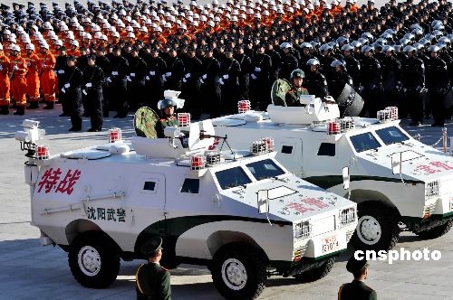 11月3日,沈阳市公安局为建局60周年,举行阅兵式。近2000人40个方队,所有警种参加了仪式。阅兵式展示了沈阳公安打击犯罪、反恐的强大力量。中新社发 文契 摄