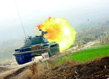 “发动前进!”伴随着指挥官的命令,坦克车启动后全速向前行驶,它的目标有3个,一是敌移动“坦克”,二是敌机枪手,三是敌反坦克火箭筒。
