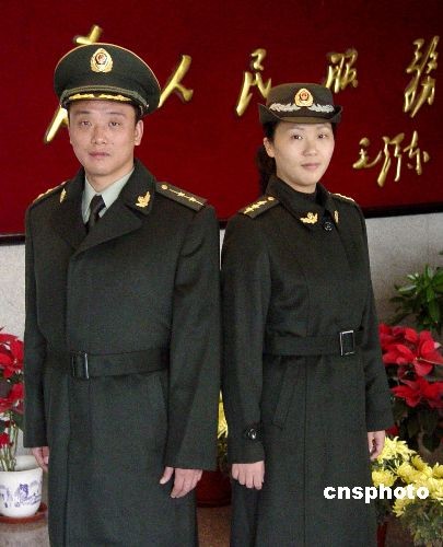 11月14日,扬州边防检查站官兵开始换发武警07式冬季军服。新款冬装分为冬常服、常服大衣和制式毛衣,均为深橄榄绿色。冬常服由关领改为开领,毛上衣可佩戴肩章作外衣穿着,更显英姿飒爽。中新社发 樊荣海芸 摄
