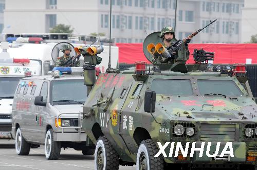 武警江西总队官兵展示装备车辆。