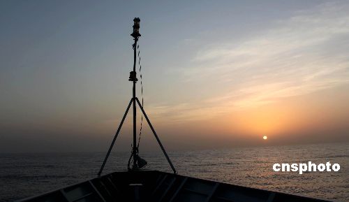 1月6日,中国海军护航舰艇编队顺利抵达执行护航任务的海域。图为亚丁湾海上日出景观。中新社发 孙自法 摄