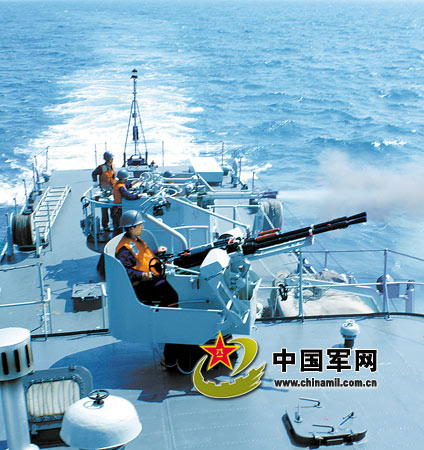 近日,南海舰队某猎潜艇大队进行对海上目标攻击训练。3月初以来,南海某海域风大浪高,该大队利用这一时机,组织舰艇编队开赴复杂海域进行防空突袭、对潜攻击等课目训练。