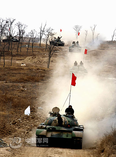 济南军区某装甲师把提高核心军事能力摆在突出位置,采取先行试训、总结推广等方法,规范大纲新增课目和重难点训练内容的组织与实施。图为3月10日,该师组织坦克分队进行对抗性训练。毕华明 摄