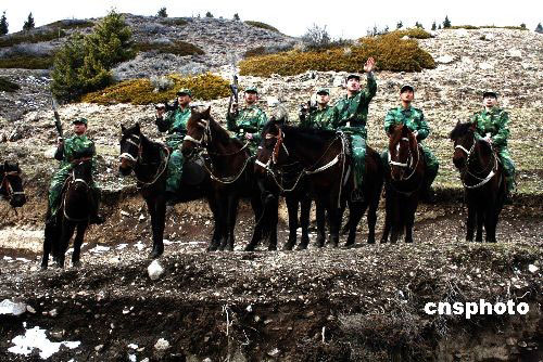 新疆4月大地开始化雪回春,博尔塔拉军分区某团边防连队官兵加强守边互防。 中新社发 马 林 摄