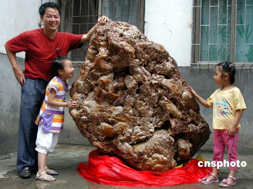 | 9月6日,江西大余县民间收藏家陈建民收藏的一块奇石惊艳四方,取名为“金玉满堂”。这块出自大余县深山河谷中的奇石重达三吨,高约150厘米。据有关专家介绍,此石体大完整、质地型好、形似雕琢,多处似玉非玉,颜色玉化镂空程度为江西省奇石收藏之罕见。为显示奇石之玄机,主人还演示奇石灌水,当水从顶部灌之,水则从下方多处洞中渗漏而出,妙趣横生,集湿润、密透、凝腻为一身,且兼有皱、瘦、漏、丑、秀、奇等不可多得之特点。经大余县西华山钨矿高级地质工程师周玉振初步认定,此奇石为玉髓玛瑙结晶体,确为罕世之物,石之精品。中新社发 刘念海 摄